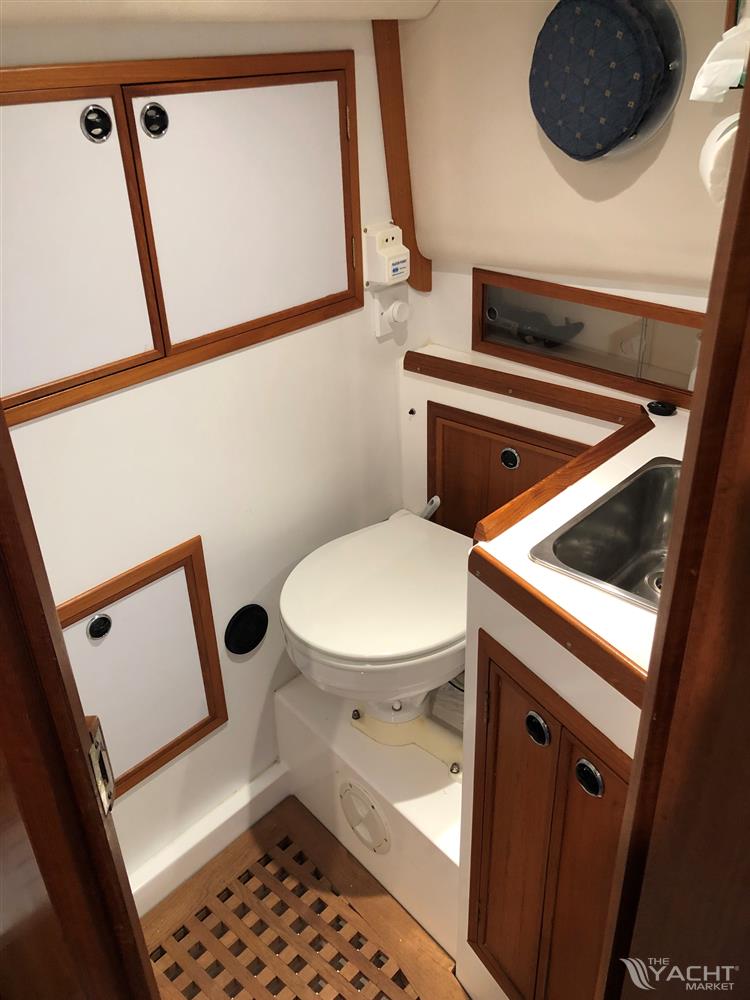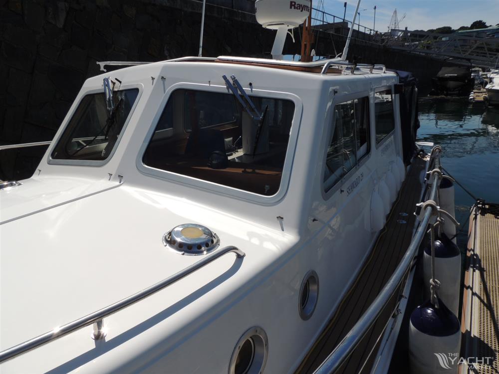 The Seaward 29, manufactured by Seaward Marine Ltd in 2007 on the Isle of Wight, is available for sale in the United Kingdom. This vessel, with an overall length of 8.70 metres and a beam of 2.94 metres, features a robust GRP hull and superstructure, with an epoxy coating applied from new. Notable equipment includes Wagner hydraulic wheel steering with an emergency tiller, full cockpit canopy, a bathing platform, and advanced navigation systems from Raymarine. Powered by twin Yanmar 4LH-STP 240hp diesel engines, it has a conventional stainless steel shaft drive linked to four-blade bronze propellers. Accommodation consists of a two single berth cabin with additional berths in the saloon, alongside facilities such as a separate heads/shower compartment and a galley equipped with a refrigerator, diesel hob, and stainless sink. Ensuring comfortable cruising, it also has bow and stern thrusters, trim tabs, and Eberspacher D2 heating. For convenience, there is a 155-litre fresh water aluminium tank, a 22-litre hot water calorifier, and a Victron 1600W inverter/charger, along with additional features such as a TV antenna, an extended pulpit, and a Lofrans electric windlass.